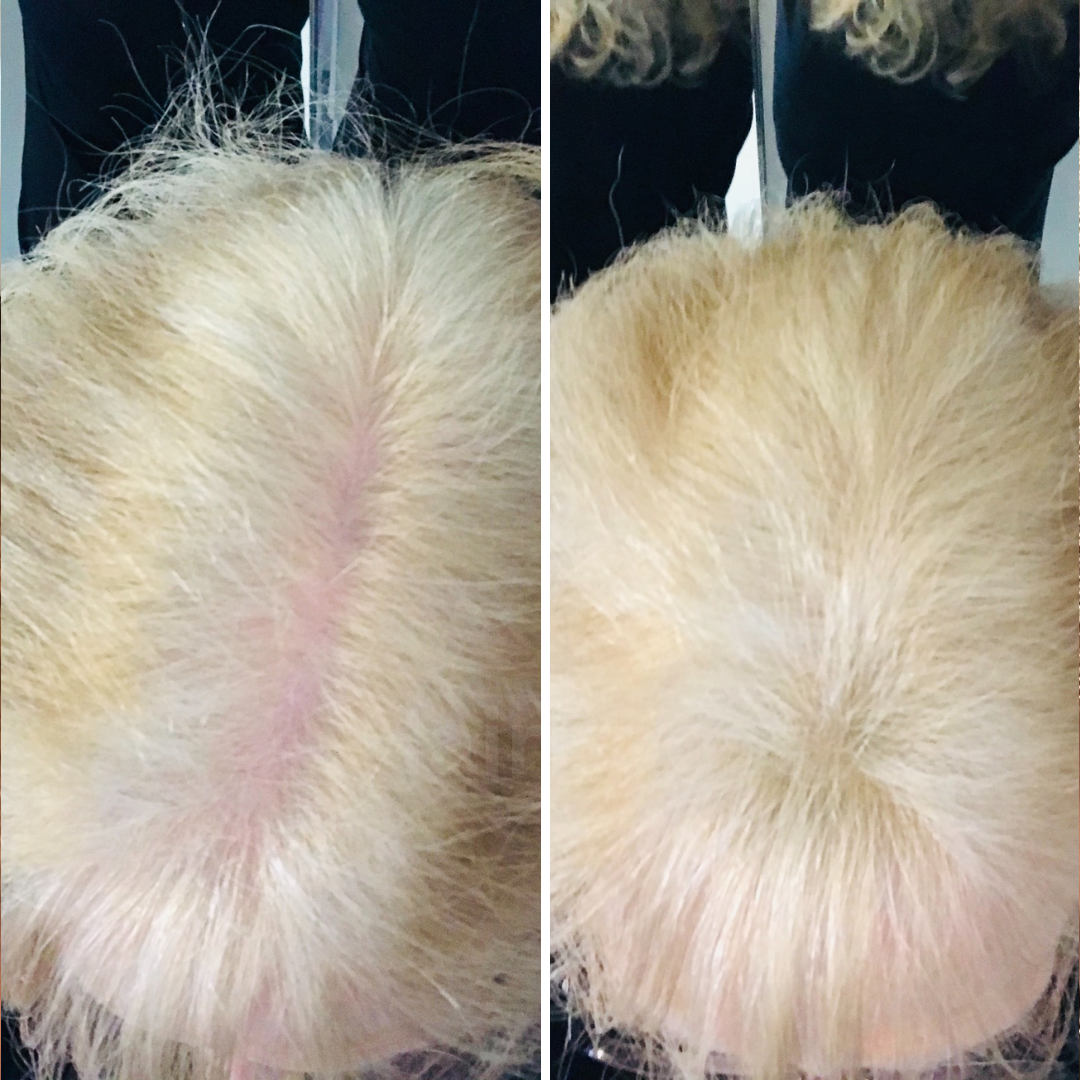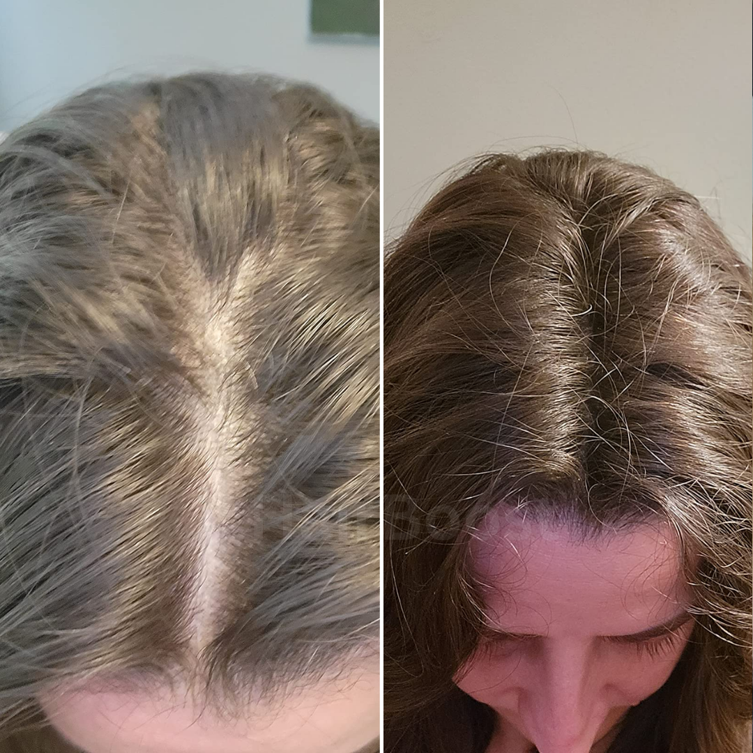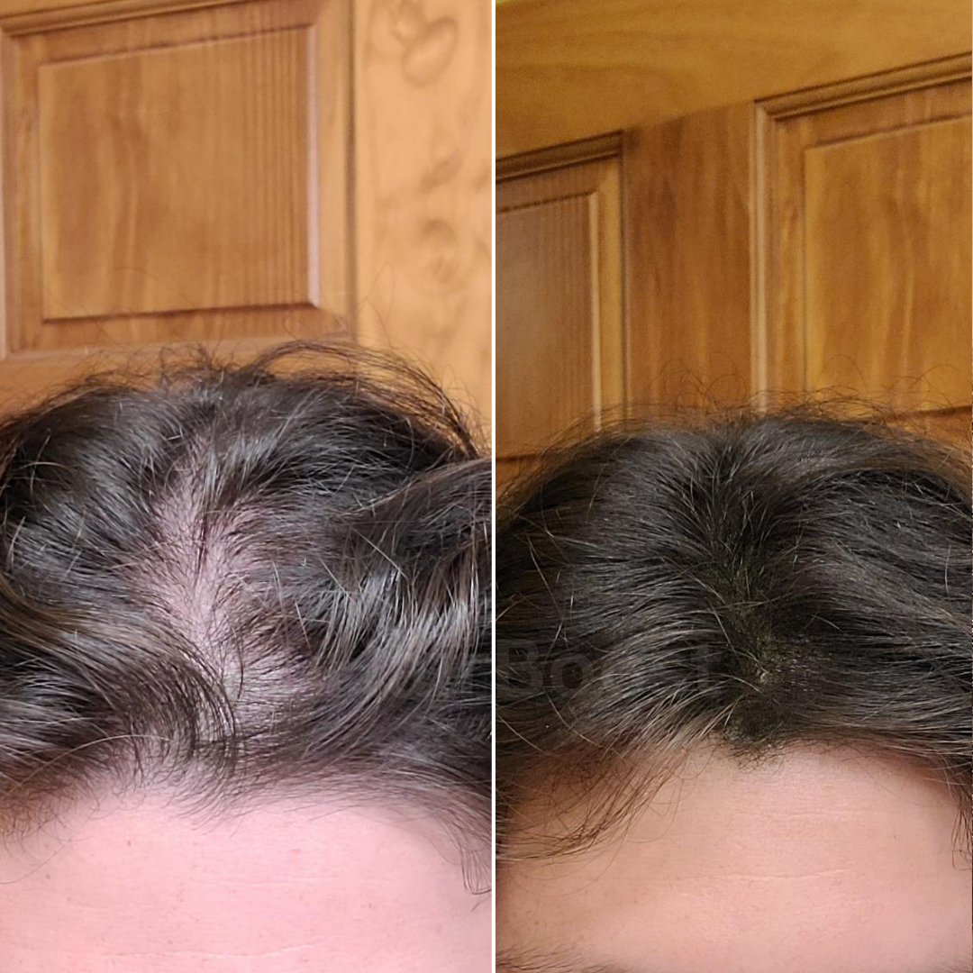Transformed my confidence. I suffered from telogen effluvium after a painful divorce. The hair loss took away my confidence and added to the trauma. This product saved my appearance and how I felt about myself. I use it sparingly along my part line, the crown, and the thinning sides of my scalp. People are shocked when they see the difference. These photos were taken a few days apart. I highly recommend it.